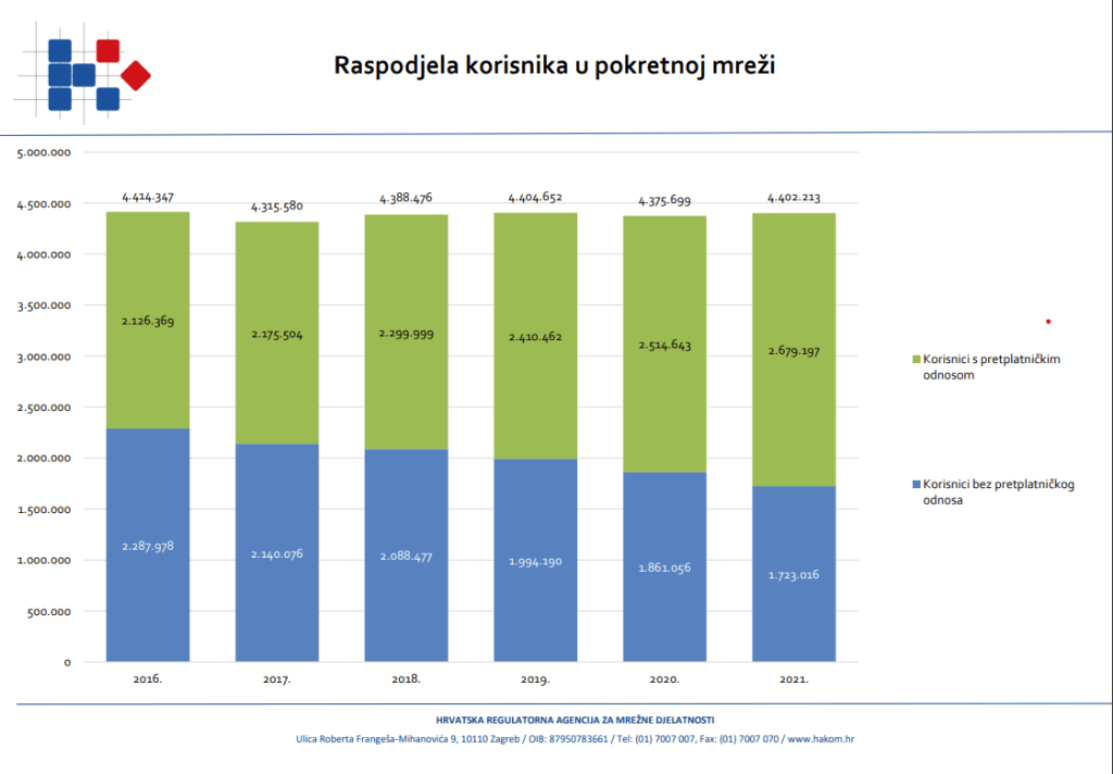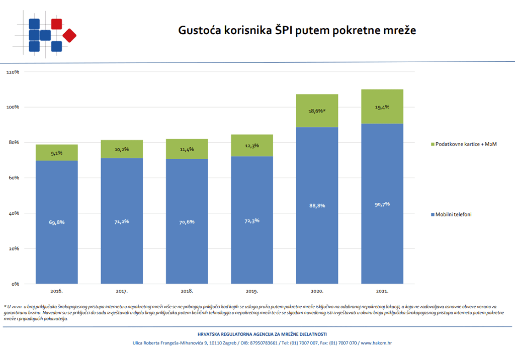 U drugom tromjesečju 2022. godine, u odnosu na isto razdoblje prethodne godine, nastavlja se prijelaz korisnika na optičku tehnologiju te broj tih priključaka raste za 32 posto, na 177 tisuća priključaka. Ukupan podatkovni promet putem nepokretnih i pokretnih mreža u istom razdoblju prosječno raste za 19 posto te je taj promet dosegnuo 793 PB (petabajta). Broj korisnika širokopojasnih priključaka s brzinom većom od 100 Mbit/s porastao je za gotovo 56 posto na 351 tisuću te sada trećina svih korisnika ima ugovorene te brzine.