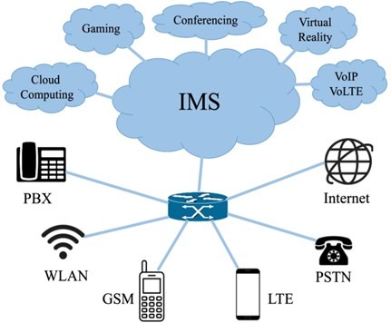 Podsustav IMS (engl. IP Multimedia Subsystem) je okvir za izgradnju jezgrene mreže neovisne o načinu pristupa i temeljenu na protokolu IP, koja u isto vrijeme pruža pristup mnogim multimedijskim uslugama (npr. govor preko IP-a ili LTE-a, video konferencija, video igre i računalstvo u oblaku ili na rubu mreže, virtualna realnost, trenutačne poruke, internet stvari itd.) i spaja sve fiksne i mobilne pristupne tehnologije i korisnike. Uz nadzor i kontrolu multimedijskih sjednica u mrežama s komutacijom paketa (IP), IMS omogućava integraciju mreža s komutacijom kanala u IP jezgru s komutacijom paketa. Na slici 1 predočena je povezanost različitih mreža i usluga unutar IMS jezgre.