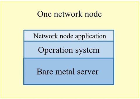 Iako funkcionalnost mreže IMS u mrežama 5G ostaje nepromijenjena, njezina fizička implementacija se donekle mijenja. Dosadašnje mreže 4G IMS obično su bile izgrađene od fizičkih (engl. baremetal) poslužitelja i svaki poslužitelj je obično implementirao samo jedan mrežni čvor koji je bio instaliran odmah povrh operativnog sustava poslužitelja. Mreža 5G IMS unosi novinu i poptuno je orijentirana na virtualizaciju mrežnih čvorova i njihovu instalaciju povrh usluge oblaka. Slika 3 prikazuje gradivne elemente jednog mrežnog čvora u mreži 4G IMS.